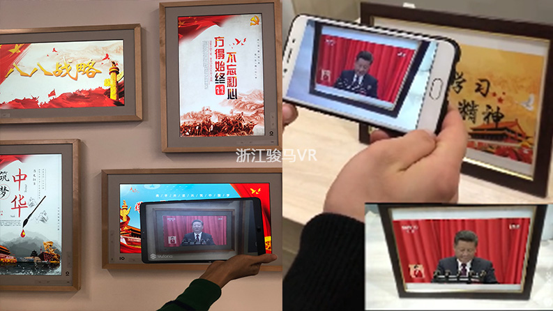 將紅色電影、黨史故事等以AR電子相框方式展示,通過平板或者安卓手機(jī)掃描圖片,讓靜態(tài)內(nèi)容動起來,讓平面內(nèi)容立起來,增強(qiáng)黨員學(xué)習(xí)教育生動性和趣味性。