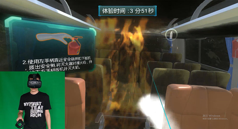 本系統(tǒng)基于三維建模、仿真引擎等技術(shù),配合HTC-viveVR外設(shè),模擬高速客運(yùn)突發(fā)火情開發(fā)一套面向駕駛員(客運(yùn)安全員)針對火情應(yīng)如何合理安全規(guī)范的組織乘客安全逃離著火車廂,并實施相應(yīng)的應(yīng)急措施救援體驗。