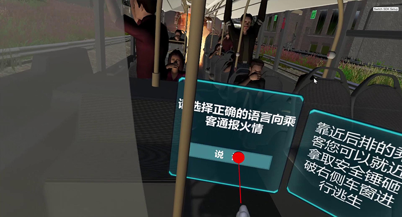 本系統(tǒng)基于三維建模、仿真引擎等技術,配合HTC-viveVR外設,模擬高速客運突發(fā)火情開發(fā)一套面向駕駛員(客運安全員)針對火情應如何合理安全規(guī)范的組織乘客安全逃離著火車廂,并實施相應的應急措施救援體驗。