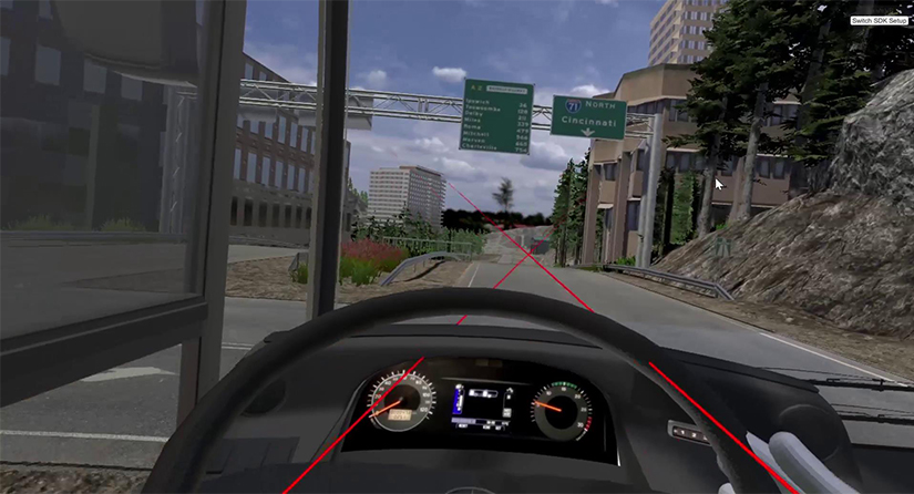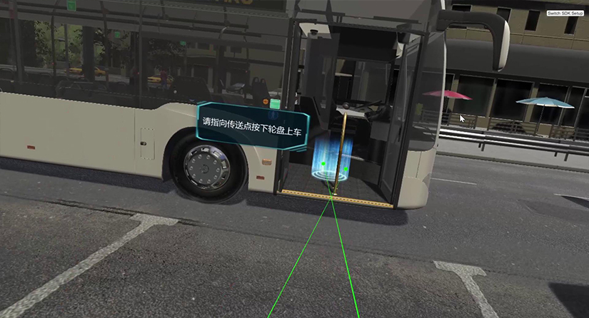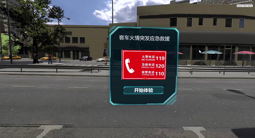 進入正式體驗環(huán)節(jié),使用手柄點擊開始體驗。進入到課程駕駛員視角后,使用手柄觸碰方向盤,并扣動手柄扳機,開始體驗,場景有時間限制,體驗為7分鐘: