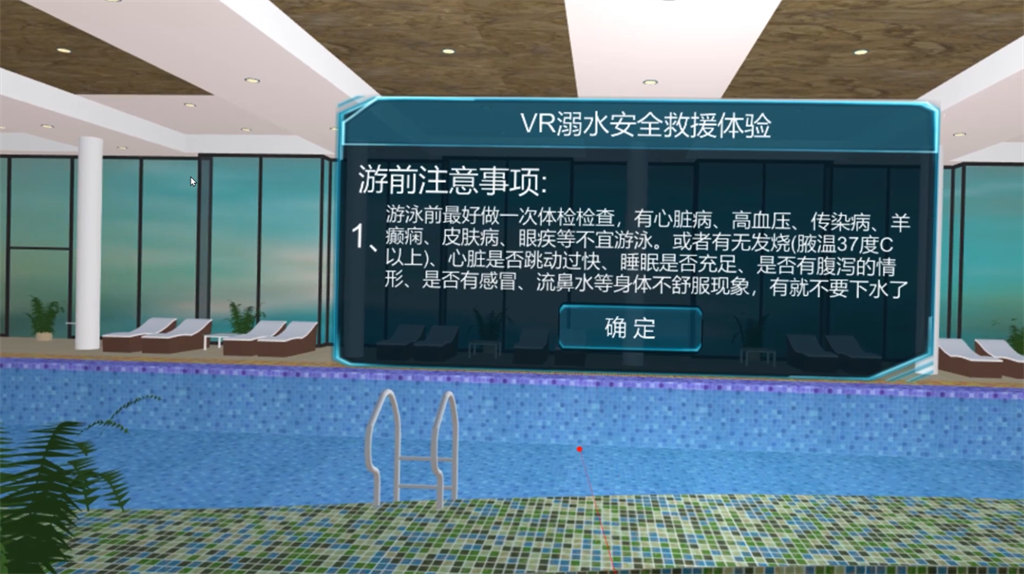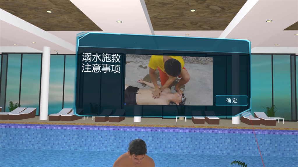 VR溺水救援教育體驗(yàn)是基于現(xiàn)實(shí)生活中的溺水場景進(jìn)行還原,體驗(yàn)者以第一視覺的沉浸體驗(yàn),在虛擬場景中學(xué)習(xí)遇到人員意外溺水后,我們作為施救者,應(yīng)如何應(yīng)對,如何采取有效措,如何施救,如何進(jìn)行心肺復(fù)蘇操作、如何自救等內(nèi)容。