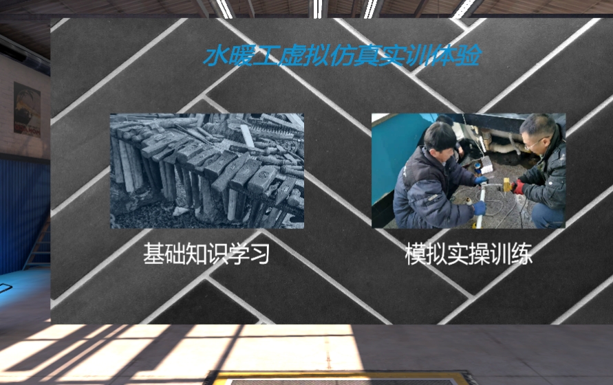 虛擬仿真毛坯房、水管、管道、熱熔器、水表等場(chǎng)景,然后按語(yǔ)音提示,對(duì)水管進(jìn)行安裝。