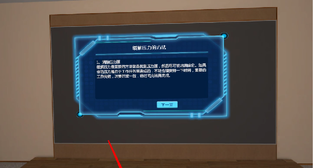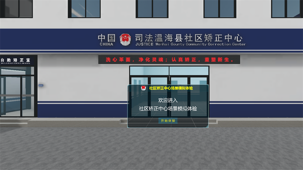 場(chǎng)景精確復(fù)現(xiàn)社區(qū)矯正中心的“三區(qū)十八室”,體驗(yàn)者仿佛置身其中,可自由漫游和互動(dòng)。系統(tǒng)還配備語(yǔ)音介紹每個(gè)科室,助力體驗(yàn)者更深入地認(rèn)識(shí)和了解社區(qū)矯正中心。