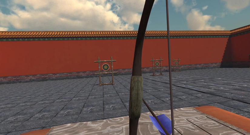 射,是指古代的軍事射箭技術(shù)。展廳將直觀展示弓與箭的形態(tài)和古人對(duì)于君子射藝的要求,并通過(guò)問(wèn)答題形式開(kāi)啟古代校場(chǎng)靶場(chǎng)的場(chǎng)景,使用者利用VR設(shè)備親子射箭,通過(guò)VR設(shè)備真實(shí)的力學(xué)反饋得到真實(shí)的體驗(yàn)。