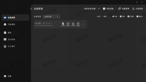 2、中控設(shè)備狀態(tài)顯示及異常報(bào)警:中控系統(tǒng)能夠?qū)崟r(shí)顯示每一臺(tái)VR頭顯是否連接正常、設(shè)備號(hào)等信息,可以管理客戶端設(shè)備。